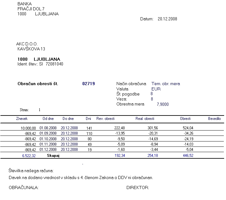 VPRAŠANJE: Podjetje AKC d.o.o. pri banki najame posojilo v znesku 10.000 EUR po obrestni meri TOM + 7,9%.