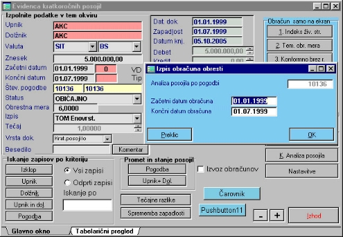 POT: GLAVNI MENU >> OBRESTI >> EVIDENCA POSOJILA