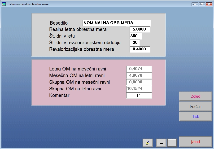 POT: GLAVNI MENU >> CENA POSOJIL >> CENE KRATKOROČNIH POSOJIL >> >> IZRAČUN SKUPNE (NOMINALNE) OBRESTNE MERE
