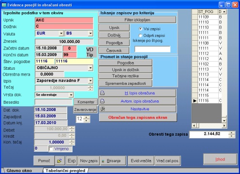 PODROČJE: OBRAČUNI OBRESTI in EVIDENCA POSOJIL