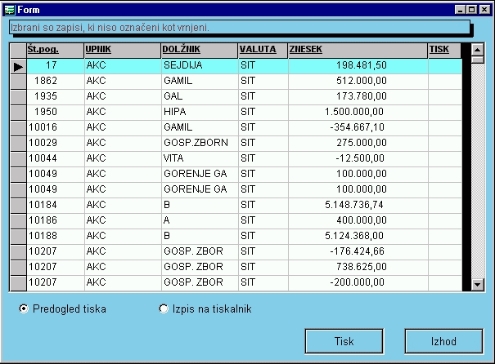 Program nam odpre predogled izpisa, katerega lahko s klikom na ikono tiskalnika natisnemo.